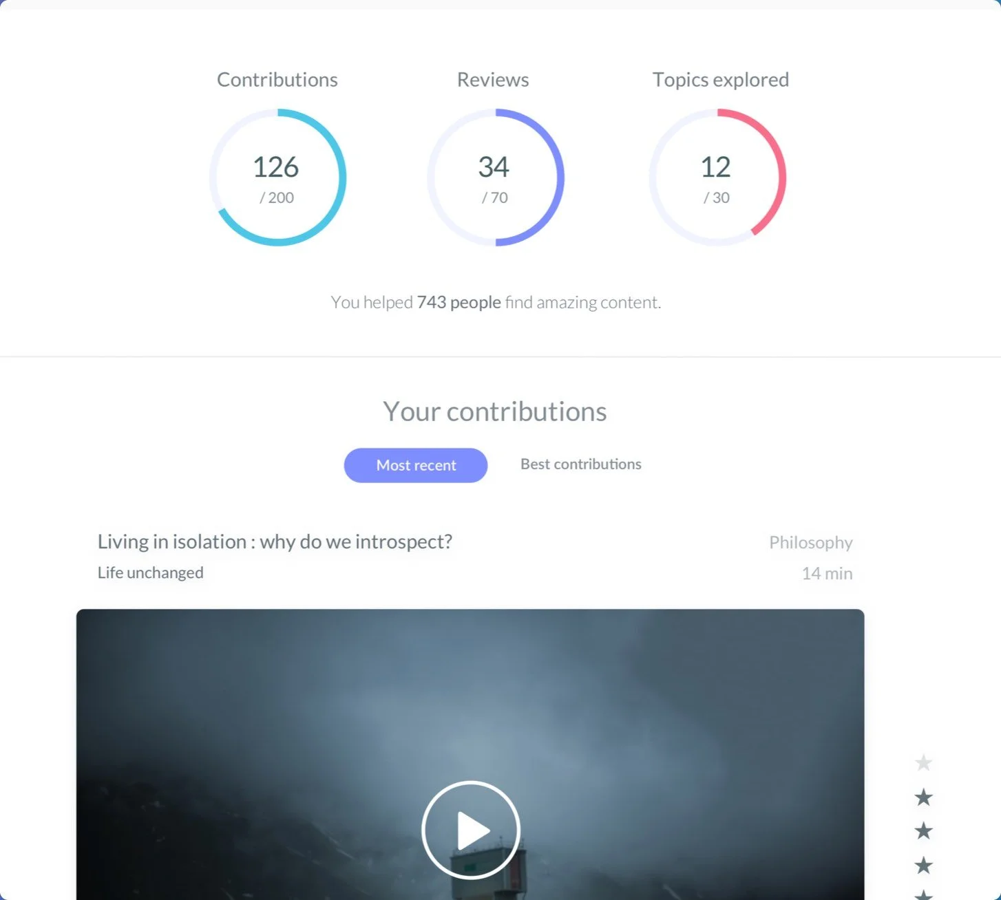 Quality content isn’t found by sorting on popularity (which is a function of popularity itself) so we made Interverse a curation-based platform, where users can submit the content they find the most useful. The submitted videos and articles are rated by other users and the contribution of the submitter is then calculated. When submitting a link, the user is notified whether this content has already been submitted in the past and, if so, its current ranking.