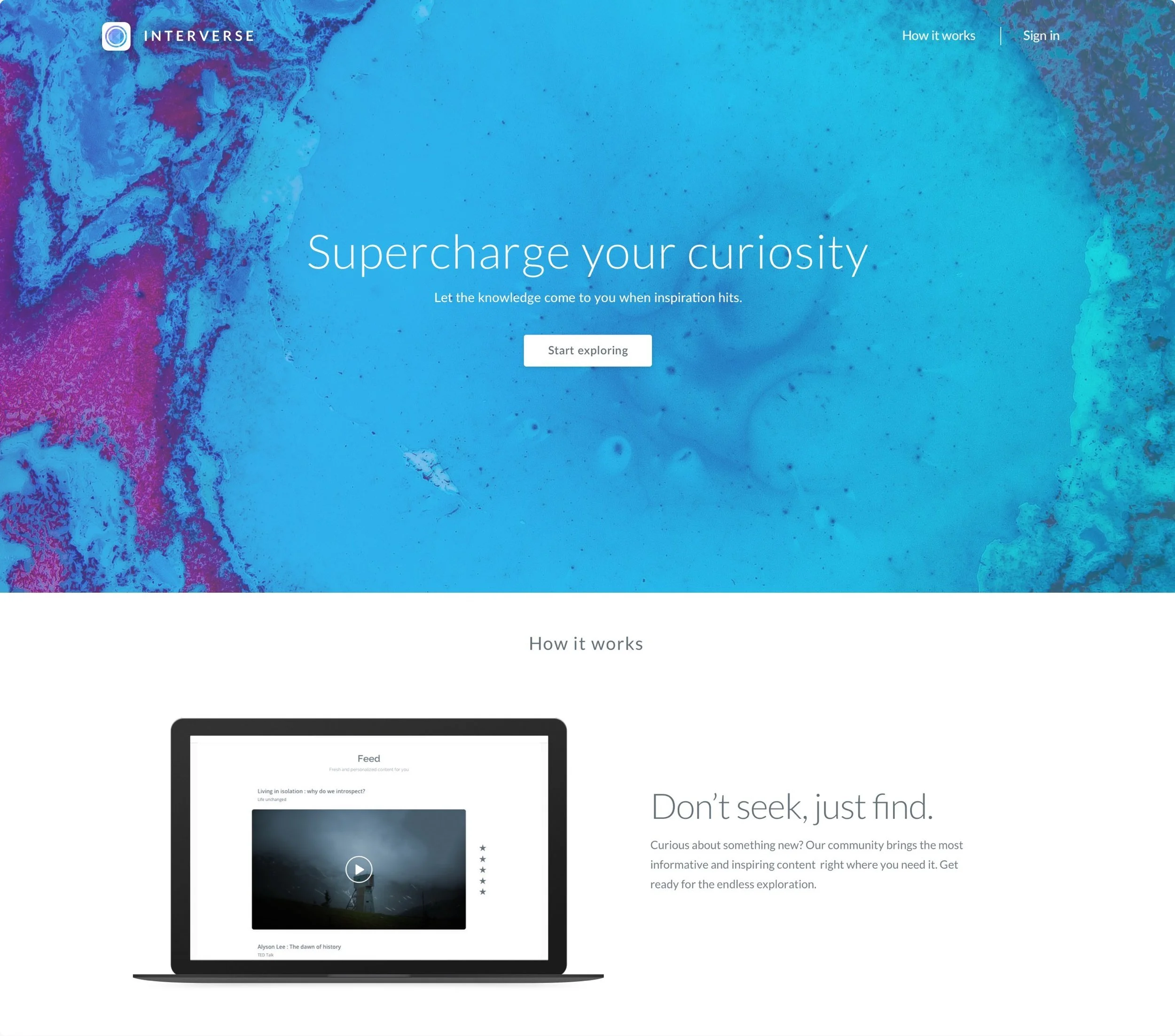 Interverse is a platform I imagined to help one quench their thirst for knowledge by bringing together the greatest content on any topic. Create a personalized learning plan on the fly and see the big picture by combining your understanding of multiple disciplines.